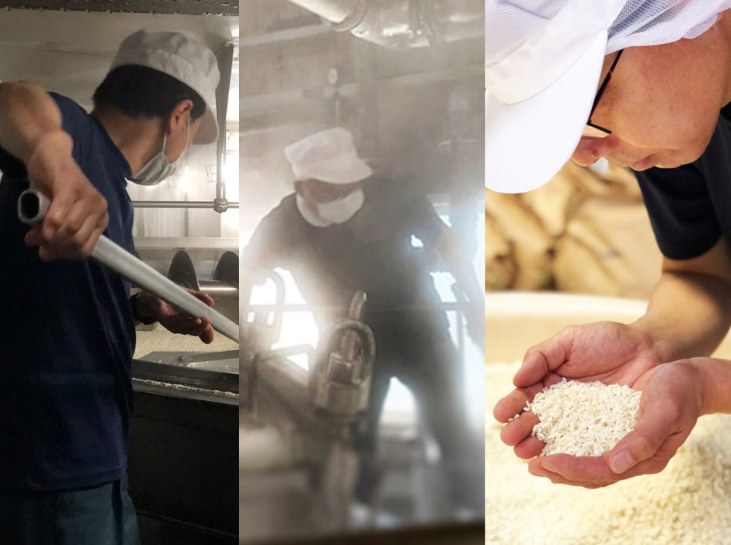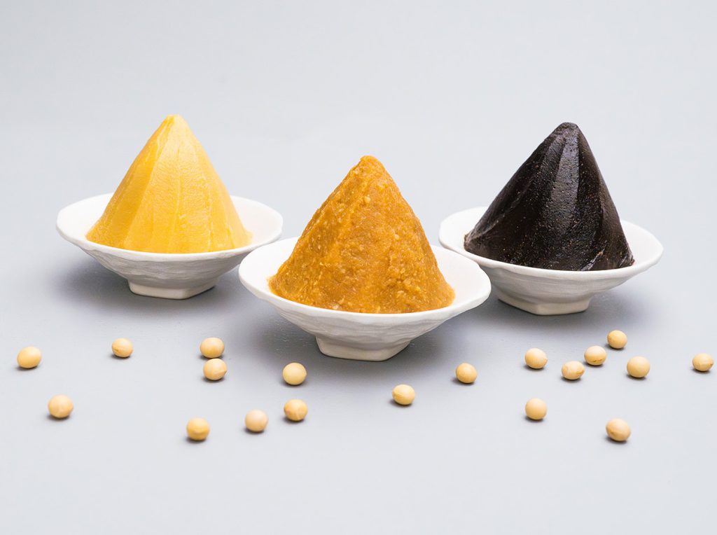 当社のお味噌は圧力釜で大豆を蒸し上げる方式で製造しております。煮るのではなく圧力をかけて蒸すことで、大豆に含まれる旨味を引き出し、味わい深いお味噌に仕上げております。古くからみなさまにご愛顧いただいております定番の米みそは、調味料などを加えず、大豆・米・塩のみで製造しておりますので、昔ながらのお味噌本来のお味をお楽しみ頂けます。