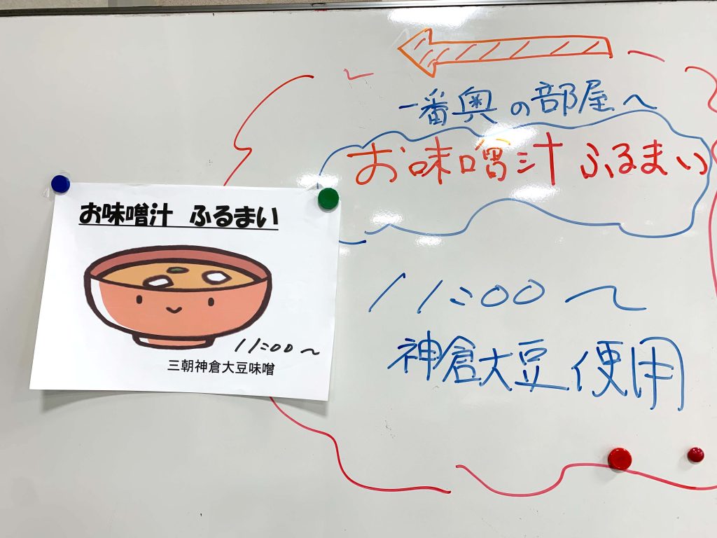 そして今回「神倉」の発売記念として、なめことお豆腐の味噌汁の振る舞いも!もちろん豆腐は神倉大豆で作った木綿豆腐です。なめこの旨みがしっかりと出ていて、優しい「神倉」のお味噌との相性も抜群。