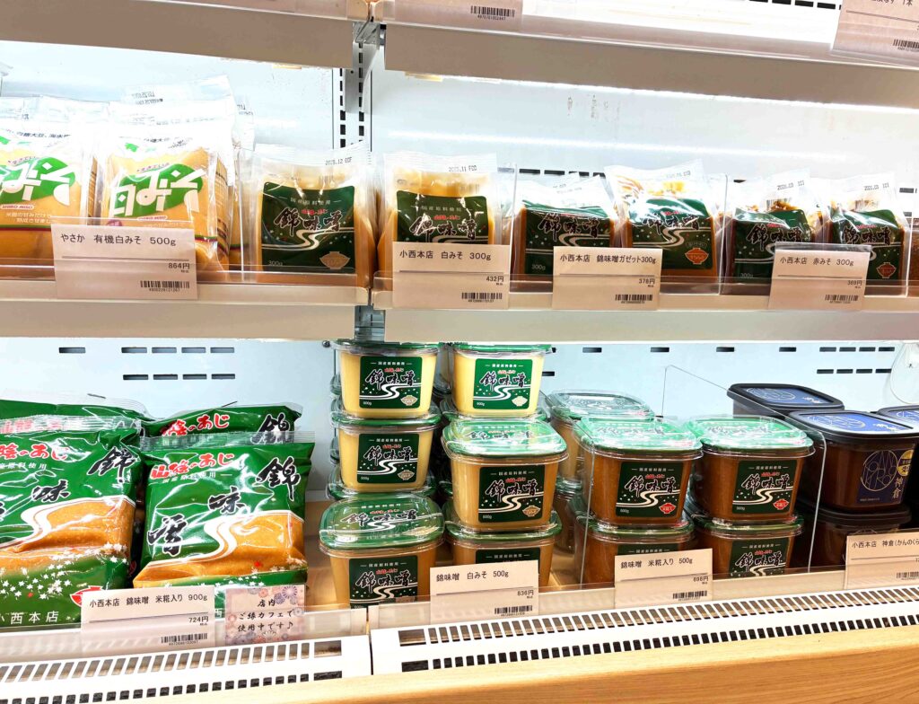 オーガニックのコーヒーや豆乳パウダー、オーツミルクなどが揃っています。数は少ないですが味噌もおいてあります。