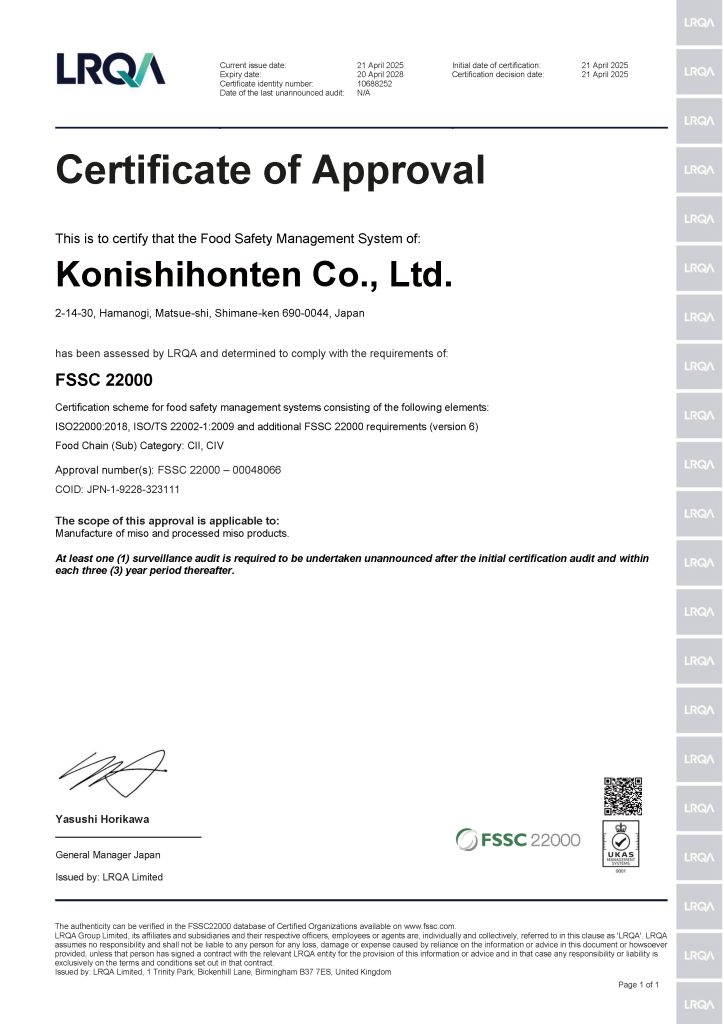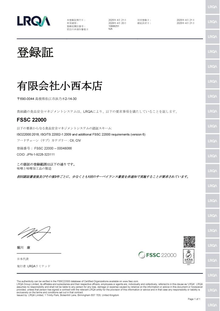 FSSC22000認証(食品安全管理の国際規格)を取得しました